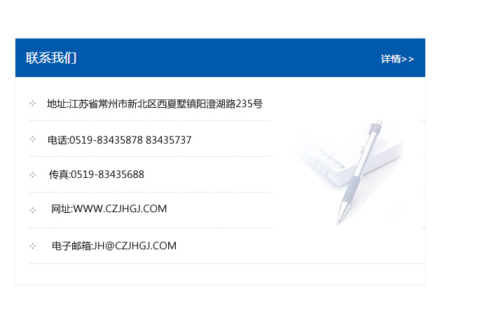 傳真:0519-83435688    郵編:213135    網址:WWW.czjhgj_com.hnycmj.com    電子郵箱:JH@czjhgj_com.hnycmj.com